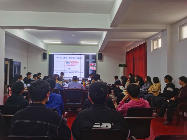 2021年11月12日,中国人工智能学会副理事长、北京大学刘宏教授以《新一代人工智能:主要特征与典型应用》为题为我校师生进行了讲座。讲座以线上线下相结合的形式进行,线上会场以腾讯会议为平台、线下会场设在物理与机电工程学院会议室,物机学院领导、相关专业师生、机器人STEAM教育研究所全体成员在线下会场聆听了报告。